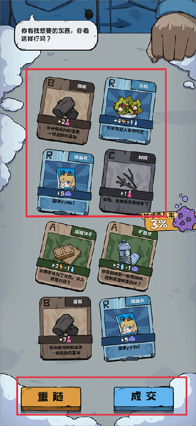 ①【成就速刷】前6小时集中触发“饿死”“渴死”“被打死”等6大死亡成就,叠加广告奖励,轻松收割上千命运之砂;②【精准刷新】用命运之砂重置卡池,开启“价值优先+SSR概率加权”双模式,大幅提升稀有卡获取效率;③【循环闭环】善用典狱长信用点启动资金,搭配“抽SSR回精神”三星Buff,煤炭囤积防金币断流——一套组合拳下来,通关节奏稳如老狗。