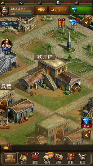 铁匠铺:在城内空地块上建造,建造与升级规则同城镇中心。主要承担装备制作、存储与管理功能,是打造精良部队、强化战力体系的核心枢纽。