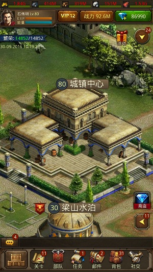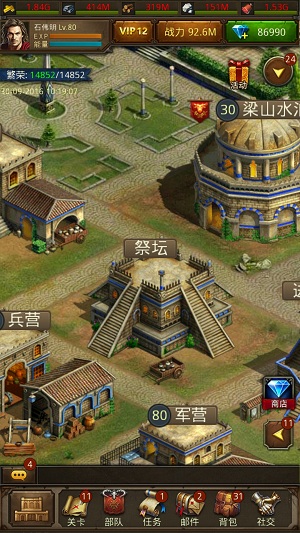 军营:在城内空地块上建造,建造与升级规则同城镇中心。提供部队训练与升阶功能,其等级越高,部队训练速度越快,是快速扩充与强化军事力量的基础保障。