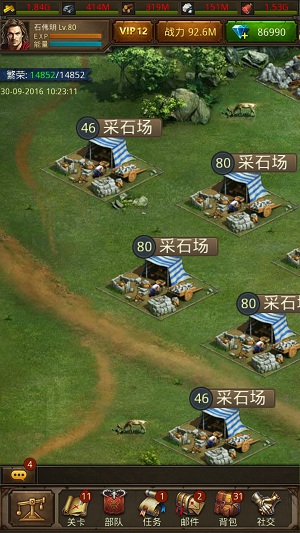 采石场:资源型建筑,建于城外空地块,建造与升级规则同城镇中心。用于提升石材产量;每提升2级城镇中心,方可解锁1个新采石场建造位。