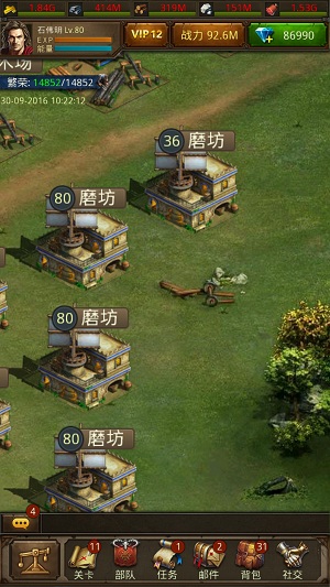 磨坊:资源型建筑,建于城外空地块,建造与升级规则同城镇中心。主要功能为提升食物产量;每提升10级城镇中心,方可解锁1个新磨坊建造位。
