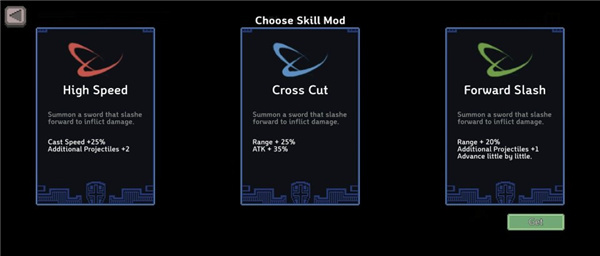 通关过程中,系统将随机提供三项技能供你选择,所选技能自动激活并可随时开关调整。这种灵活的Build机制让你能根据当前局势动态优化战斗策略。同时,返回基地后还能进行角色升级、皮肤购买等养成操作,为下一次挑战积蓄更强力量。