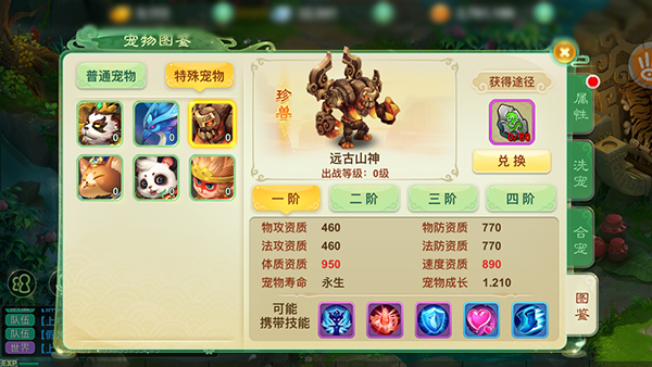 远古山神是理想的血敏宝宝胚子,连续登录即可免费领取。该宠65级可携带,优势在于卡速及时加药,但因追求速度而较为脆皮。建议速度比人物快50点,其余属性全加血量。推荐8技能配置(不含护肤):高级物免、高级法免、高级神佑、高级幸运、高级迅捷、高级隐身、高级灵敏、高级强壮。加点策略亦可灵活调整,鼓励玩家探索个性化套路。