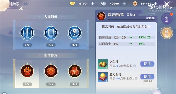 修炼方面,优先点满主属性修炼,再投入【攻击指挥】以提升灵兽与仙友输出,降低灵脉及仙友挑战难度。