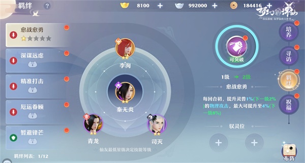达到52级时,将解锁【仙友羁绊系统】,集齐指定仙友可手动激活【驭灵技能】,赋予灵兽额外能力,全面提升灵兽实力。