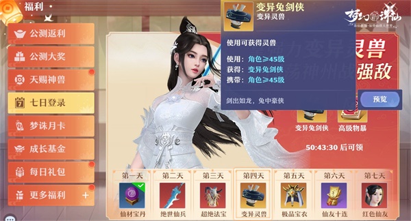 总结前七日成长重点:优先提升宝石等级与修炼等级,切勿错过任何可获取宝石与金丹的活动。灵兽方面,35级获得的七彩兽性价比极高,建议优先培养;其次可关注【七日登录】赠送的变异兔剑侠及珍兽挑战所得赤焰猴。灵兽洗髓需理性投入,避免过度消耗资源。
