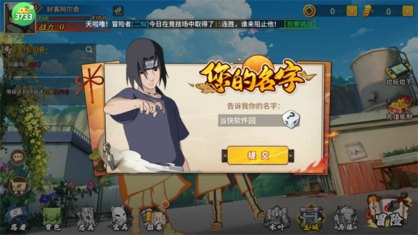 1、进入游戏先取个名字,创建属于你的忍者身份。