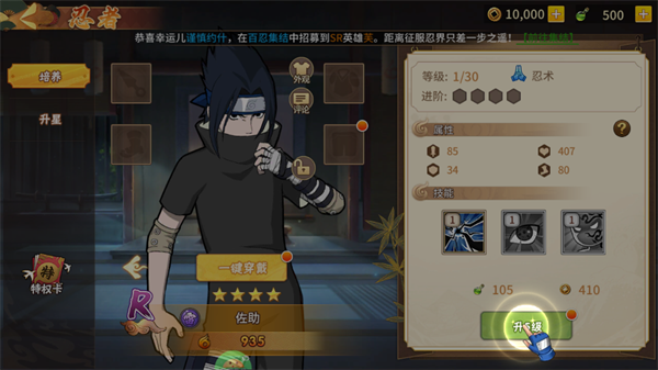7、利用胜利的奖励去提升角色战力,也可收集角色碎片合成更强忍者,打造你的最强忍者小队。