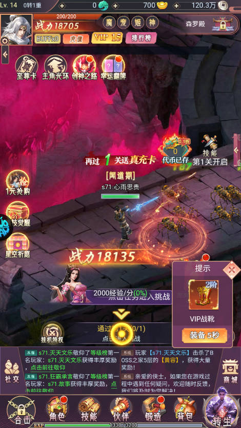 2、游戏一上线即可获得满级VIP15特权,畅享尊贵身份和全方位加成。