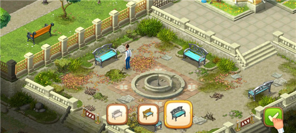 6. 自由选择长椅的款式与颜色,确认后即可放置于花园中,开启个性化改造。
