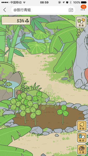 进入游戏后,你将来到温馨的小庭院,主角是一只热爱旅行的青蛙。在它出发前,你需要为它准备便当、护身符和道具。三叶草是游戏中的基础货币,通过点击庭院中的草地即可收集。偶尔还能收获稀有的四叶草,可作为一次性护身符使用。