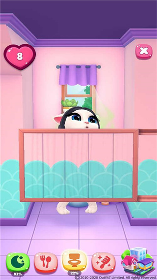 每一次互动——无论是喂食、洗澡、梳妆还是陪玩——都能为安吉拉积累经验值并获取金币。等级提升不仅带来视觉成长,还会解锁丰厚奖励,包括大量金币与新道具。你可在主界面右下角随时查看她的当前等级与升级进度。当状态条变红时,务必及时响应她的需求,这正是快速涨经验的关键时机。