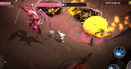 技能一:瞄准玩家冲锋,路径留下火焰造成持续伤害。