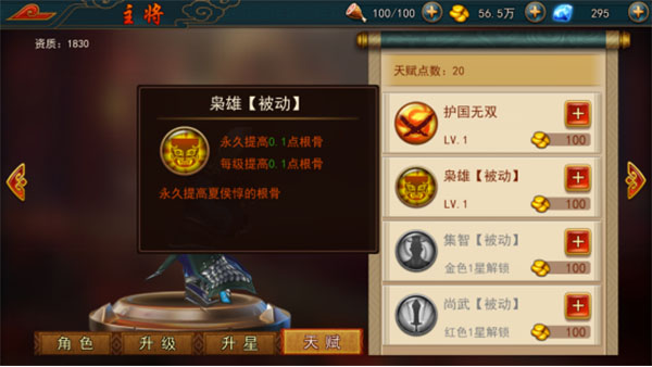 提升星级不仅能增强主将的攻击、防御与生命值,还能在跨越大星级时改变武将外观颜色并解锁新天赋。基础天赋可强化无双技能伤害,而高阶天赋则提升“根骨、力量、抵御”等核心属性,进一步优化战队属性继承效果。此外,主将战力提升还会为武魂提供经验,武魂升级后可反哺全队战力。