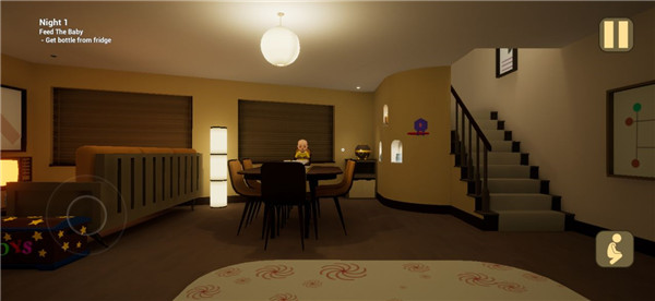 接下来是换尿布,最关键的时刻到了,胆小的人做好心理准备,你拿到尿布刚要给他换的时候会突然变成恶魔把你吓倒,然后开始召唤玩具攻击你,你必须赶紧来到你自己的房间,拿出金色奶嘴给他戴上,那时候他就会突然倒下,你就得带着他去婴儿房,给他读绘本,然后第1个故事结局达成了