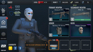 - 强化你的角色:打造专属悍匪形象——无论是小丑杀手、特种部队风格还是经典恶棍造型,均可通过解锁面具、防弹背心与酷炫服装实现。高清3D画面与电影级剧情设计,让每一场枪战都热血沸腾。