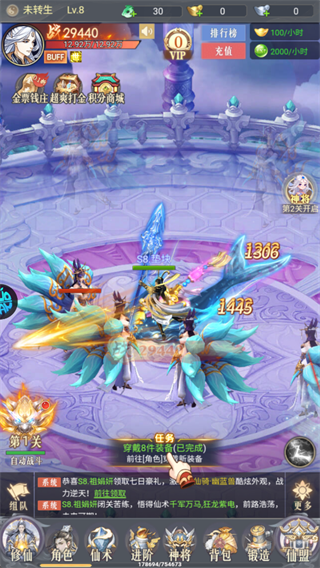 游戏支持全自动战斗,进入第1关后角色将自动击败怪物,无需手动操作。完成“穿戴8件装备”任务后,系统会提示前往角色界面更换装备,请及时响应。