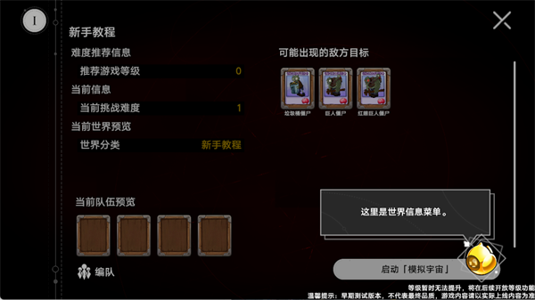 4、进入世界后,左上角显示当前世界信息与难度等级。点击【编辑队伍】配置出战植物,随后点击【启动宇宙模拟器】正式开始挑战。