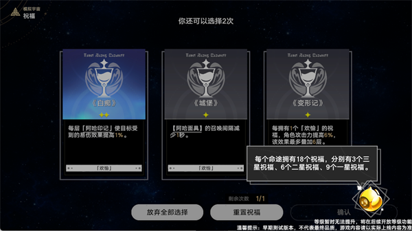 7、每次通关后可获得【祝福】奖励。每个命途包含18个祝福,其中3个为三星、6个为二星、9个为一星。合理搭配祝福能显著提升后续关卡的通关效率。