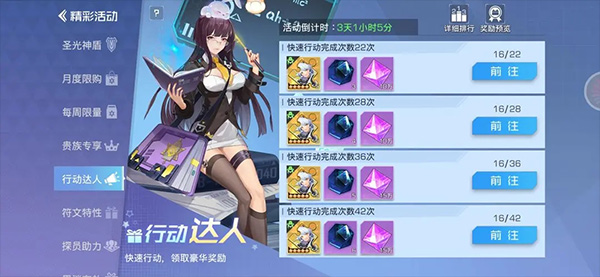 这是核心重磅活动!建议从开服第14天后开始筹备,此时队伍已初步成型。即使稍晚启动(如第21天),仍可完成,只是进度略慢。需重点积累:精英招募券(⭐⭐⭐)、高级招募券(能存则存,无需刻意购买)、各类五星碎片(⭐⭐⭐)及特异招募券(与高招券同理)。注意:四星合成的五星不计入碎片统计。五星碎片主要通过爬塔和每日委托获取,因此每日委托应优先刷取五星碎片。最后,务必放大集结活动的所有奖励收益。