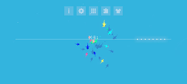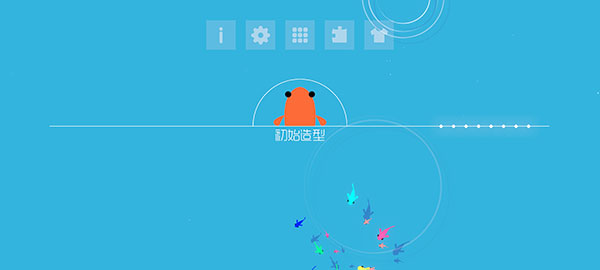 进入游戏后点击屏幕即可开始。主界面包含五大功能:设置(可切换语言)、关卡选择、拼图收集、皮肤更换等。通过挑战关卡可解锁不同造型的小鱼皮肤,丰富个性化体验。