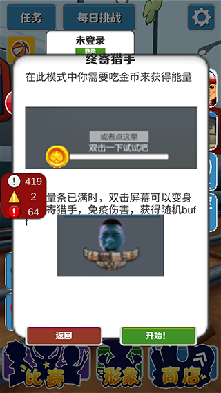 愣子跑酷终寄猎手版是一款由UP主魔改《地铁跑酷》打造的恶搞跑酷游戏。游戏中,主角换成了大家熟悉的“愣子哥”——只因他不小心砸坏了隔壁胖子家的玻璃,随即被愤怒的胖子一路狂追。你的任务就是操控愣子哥尽可能跑得更远,同时躲避路上层出不穷的障碍物。收集金币还能兑换关键道具“泡面”,助你延长跑酷时间!本版本全新加入终寄猎手模式:通过吃金币积攒能量,当能量条蓄满后即可变身“终寄猎手”,不仅免疫一切伤害,还会随机获得强力Buff,体验感拉满!快来下载,助愣子哥逃出生天、跑出极限吧!