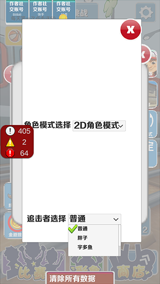 4、在追击者设置中,可选择“胖子”或“宇多鱼”作为追赶者,设置完成后关闭窗口即可开始游戏。