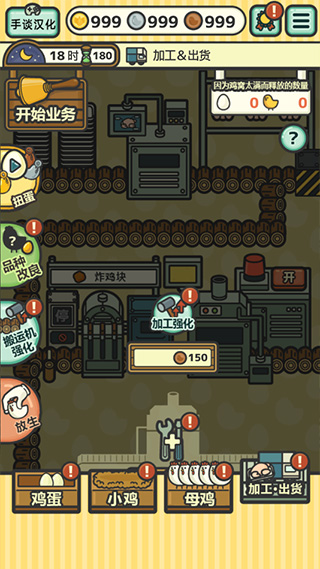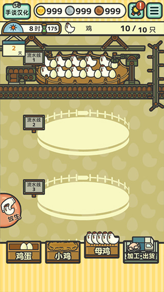 2、进入夜间后,你将无法进行日常生产,但可以利用这段时间强化现有设备、建造新的流水线、增加商品种类,或改良小鸡品种以提升整体产出质量。