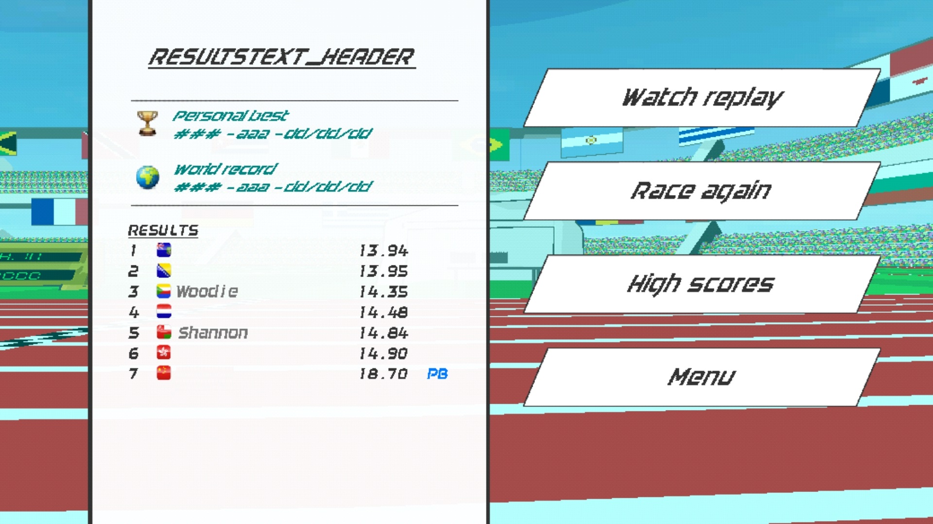 速度之星2025提供丰富多样的径赛项目,包括100米、200米、400米短跑,以及110米跨栏、400米跨栏等经典田径赛事。玩家可自由选择心仪项目参赛,并在赛前自定义代表国家——挂上国旗,为荣誉而战,让每一次冲刺都承载国家荣耀。