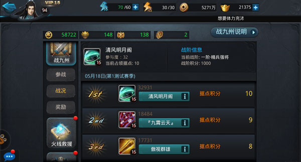 3、战阶积分:在帮派积分基础上,结合参与度等因素修正后得出的排名得分。第一名75分,第二名25分,第三名-40分。该积分是获取精魄等稀有资源的关键。但升至7阶需2700分,按当前每周最高75分计算,需约23周,且修正规则尚未公开,进度较慢。