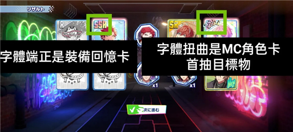 抽出SSR别急着庆祝!游戏内卡牌分为“MC角色卡”(用于上场战斗)和“回忆卡”(装备类道具)。关键区别在于卡片左上角的等级标识:若为喷漆涂鸦字体,即为目标MC角色卡;若为标准正体字,则为回忆卡,不可用于编队。