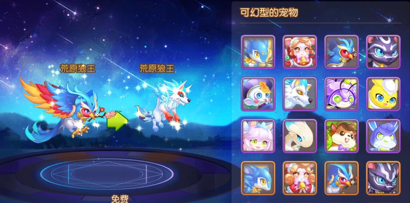 宠物支持幻形、重生与回收操作。幻形可通过消耗“宠物幻形药水”改变外观,若想恢复原貌,只需重新选择原始形象即可免费还原。