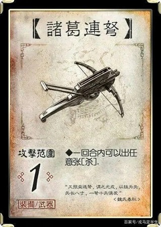 虽仅有1点攻击范围,但配合高过牌武将(如张春华、黄盖、留赞)可化身“连发狙”,实现爆发式输出,是快攻流的核心装备。