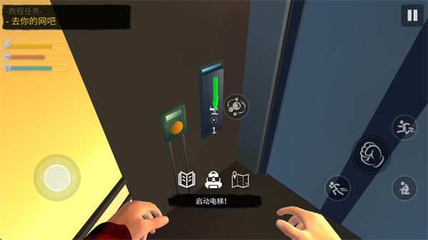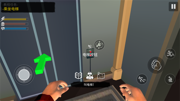 2、将屏幕中心点放在需要交互的位置上会出现交互按钮,比如电梯开关。