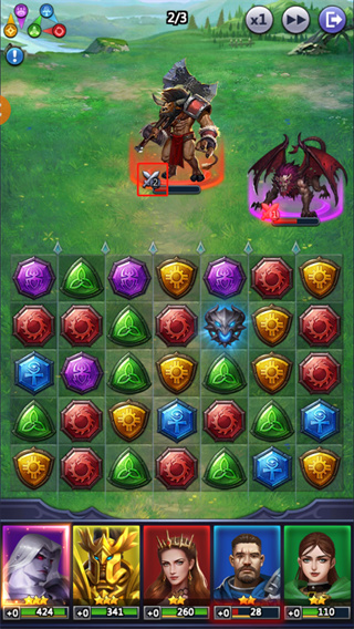 1、魔幻经典的消消乐玩法,所有的神话元素可以搭配,闯荡精彩的异能世界;