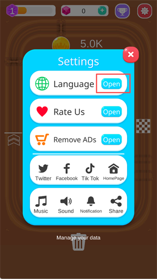 2、在设置界面中,找到【Language】选项,点击右侧的【Open】按钮。