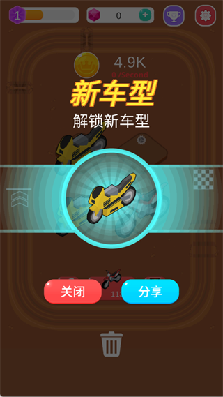 进入【商店】可以购买更高级的车辆,或使用宝石解锁赛道收益加成。