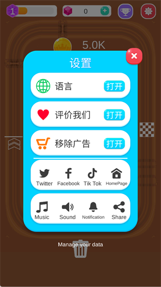 1、进入赛车大亨中文版游戏主界面,点击右上角的齿轮设置图标。