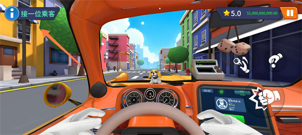 游戏开始时,左上角会显示提示“接一位乘客”。点击绿色的“开始”按钮,即可进入接单流程。