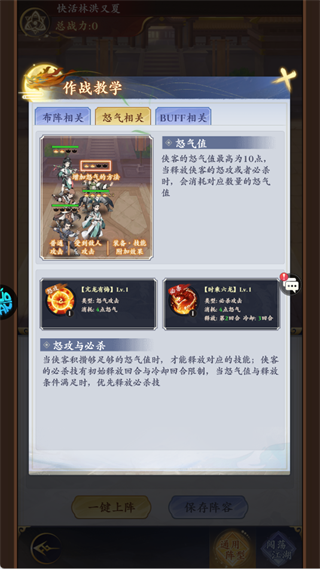 每位侠客拥有10点怒气上限,通过普攻、受击或装备特效等方式积累怒气。怒气用于释放强力的怒攻与必杀技,往往能在战局胶着时扭转乾坤,是制胜的关键要素之一。