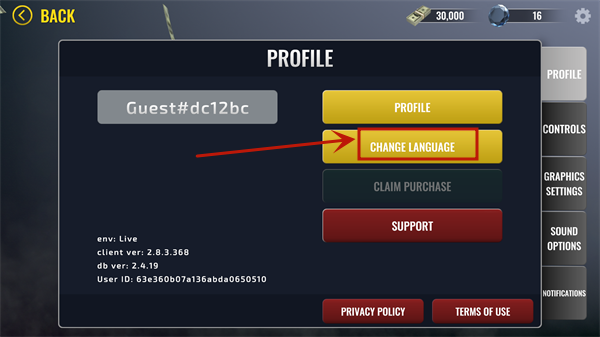 2、在设置菜单中找到“CHANGE LANGUAGE”选项,点击进入语言选择页面。