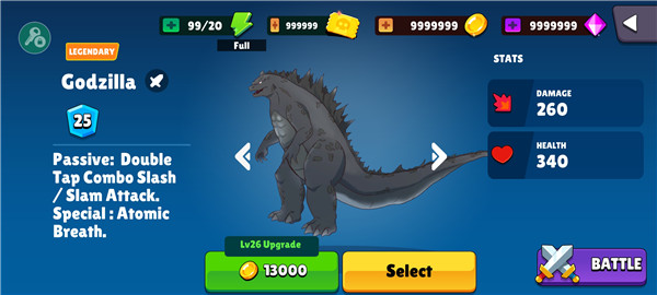 从哥斯拉、金刚到魔斯拉、基多拉,多种怪兽任你挑选,每位都拥有独特外观与技能。