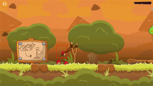 4. 拖动小鸟至合适位置后松开,即可将其发射出去攻击捣蛋猪。