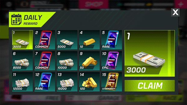 首次进入游戏后,点击“车辆选择”即可浏览并试驾各类赛车,每辆车均附带详细参数说明。准备好后,进入底部赛事界面,别忘了领取左上角的每日奖励。比赛开始后,长按油门加速,左右滑动屏幕控制方向;遇到弯道务必及时减速,避免冲出赛道。胜利后将获得丰厚奖励,用于持续升级你的战车。