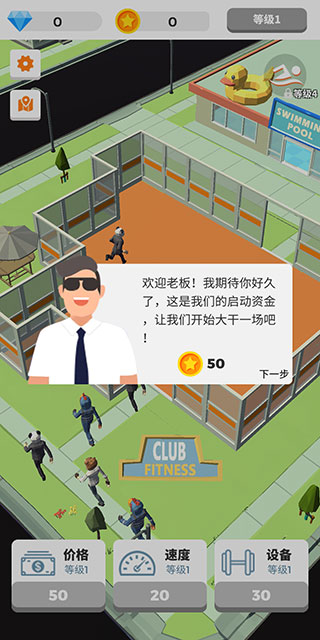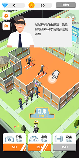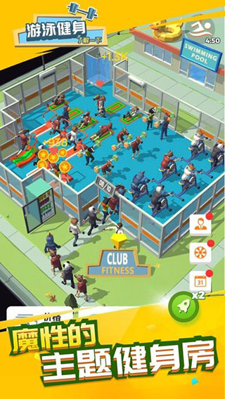 游泳健身了解一下无限金币版是一款极具魔性的放置经营类游戏,其核心玩法简洁明了,玩家在10分钟内即可掌握全部规则。在游戏中,你将经营一家健身房,初始阶段需购置各类器械,并通过升级设备、提升用户锻炼效率以及调整健身收费标准这三项关键手段,全面增强健身房的整体运营实力。
