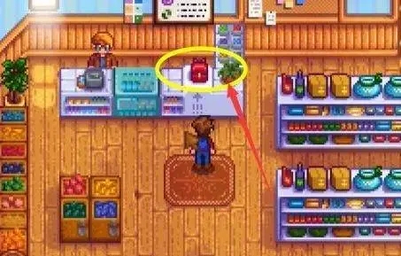 2、点击店内右侧柜台上的红色背包图标(注意:左侧为种子等商品,背包在右侧)。