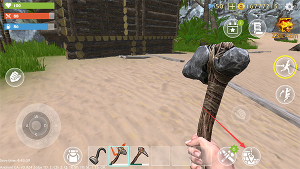 2、在首页中会有很多虚拟按键,拳头形状的攻击,圆形的是移动按钮,其他两个分别是背包和道具制作。