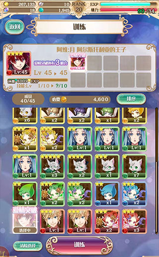 获得材料王子后,进入“王子训练”界面,将需突破的王子置于左侧,材料王子放入训练名单中。
