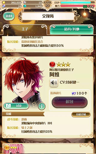 首先,爱情突破所需的材料是与目标王子相同的卡牌。例如,若要为阿维王子进行爱情突破,需准备另一张阿维王子作为突破素材。