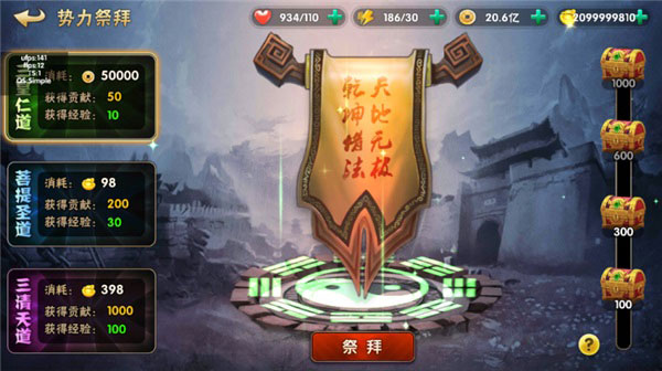 4、势力祭拜(每日参与即可免费领取宝箱奖励):